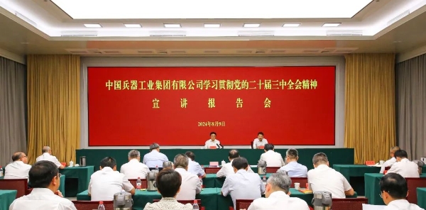 8月9日,中國兵器工業(yè)集團有限公司黨組舉辦學習貫徹黨的二十屆三中全會精神宣講報告會,第二十屆中央委員、中央黨史和文獻研究院院長曲青山作宣講報告,集團公司黨組書記、董事長程福波主持報告會。